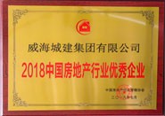 成果名稱:2018中國房地產(chǎn)行業(yè)優(yōu)秀企業(yè),獲獎單位:威海城建集團(tuán)有限公司,頒發(fā)單位:中國房地產(chǎn)行業(yè)管理協(xié)會