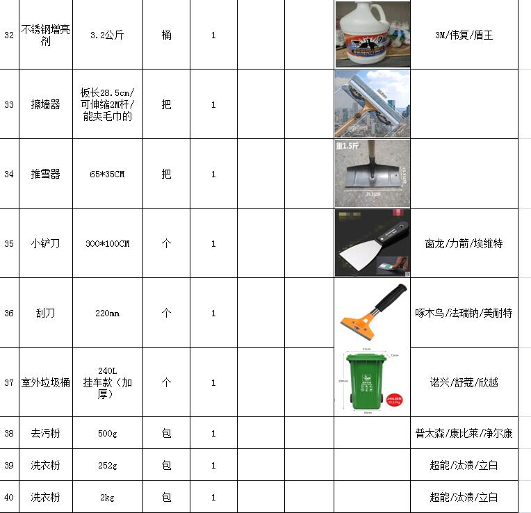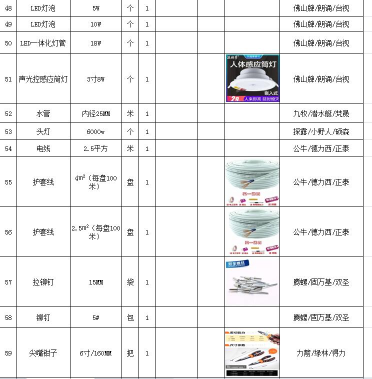 (5)采購(gòu)內(nèi)容:威海建城物業(yè)物資定點(diǎn)采購(gòu),主要包括五金、水暖管件、保潔、維修、綠化所需物資、應(yīng)急維修的其他物資等,采購(gòu)清單詳見(jiàn)附件。
