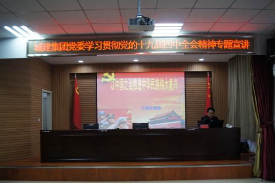 為深入學習宣傳黨的十九屆四中全會精神,12月12日,威海城建集團黨委理論學習中心組對十九屆四中全會精神展開集中學習,邀請市委十九屆四中全會精神宣講團成員、中共威海市委黨校王炳壯教授,以《以中國之治推動民族復興》為題,為全體黨員和干部職工對十九屆四中全會精神進行了詳細講解。集團黨委副書記孫曉東同志主持會議并提出具體要求。